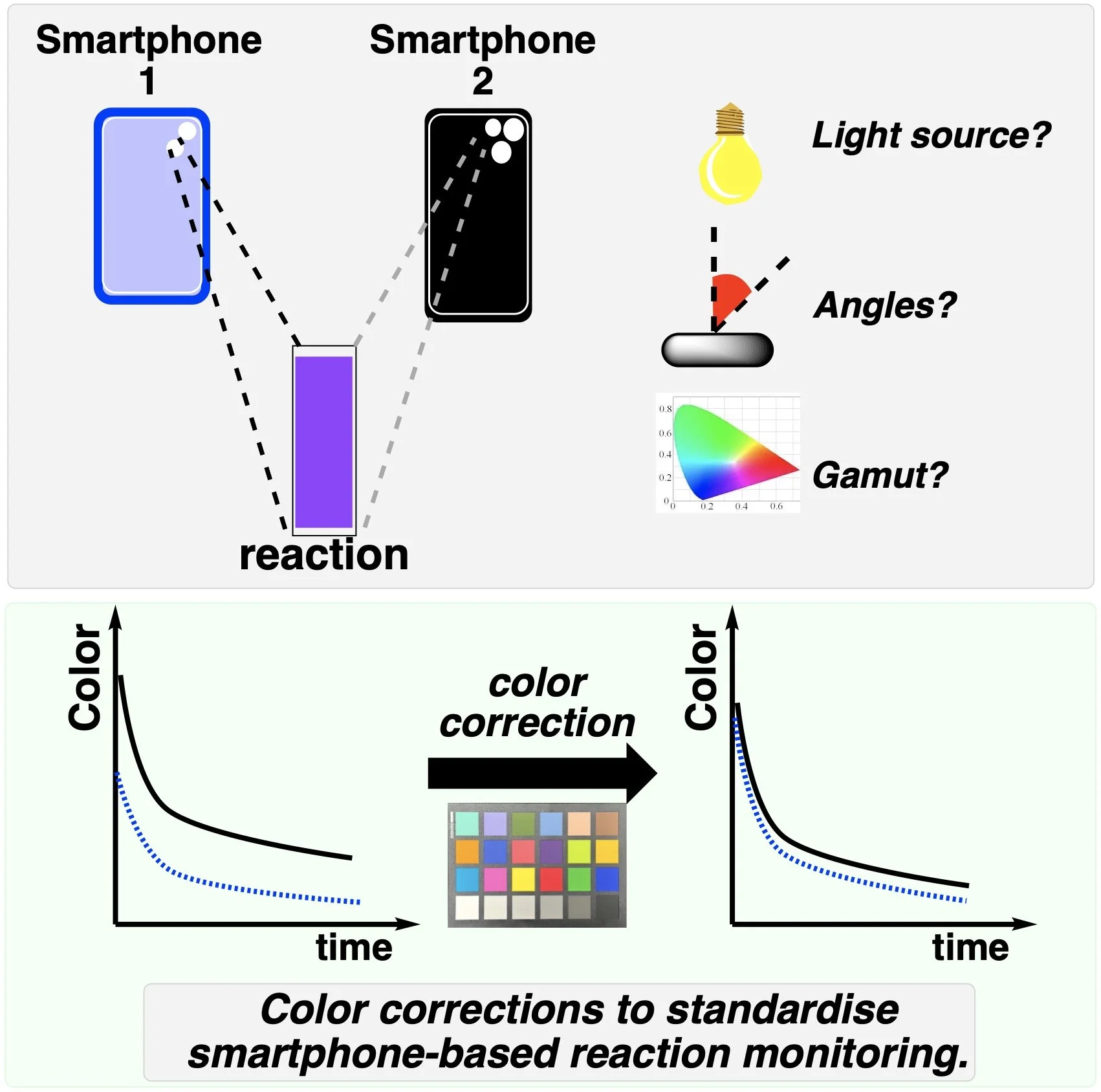 RGB color correction and gamut limitations in smartphone-based kinetic analysis of chemical reactions